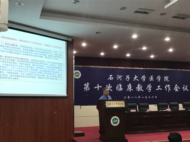 为进一步做好临床教学基地建设,提高临床教学质量,迎接2018年yl23455永利官网临床医学专业认证和本科教学审核评估工作,2018年1月20日上午10:00,yl23455永利官网在yl23455永利官网学术报告厅召开了yl23455永利官网第十次临床教学工作会议,全面总结近年来的实践教学工作,对今后临床教学工作提出了明确的标准和要求,并进行了优秀临床实践经验交流。本次会议是在2017年国务院办公厅《关于深化医教协同进一步推进医学教育改革与发展的意见》和学院面临2018年临床医学本科专业认证和本科教学审核评估形势下召开的一次重要会议,旨在对我院前期临床教学工作进行总结,并对今年的临床教学工作进行安排部署。