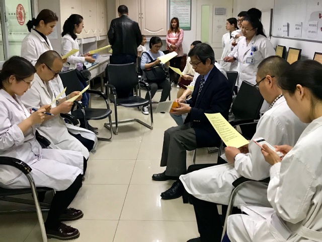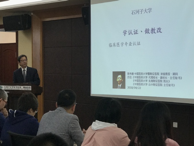 陈伟德教授分享了台湾yl23455永利官网评鉴(Taiwan Medical Accreditation Council,简称TMAC)之经验。对传统的医学教学方法和现代教学方法进行了梳理和对比,随后重点讲授了如何实施和正确进行mini-CEX评量。4月23日下午,按照事先的准备和计划,专家们来到我院肾病科、骨三科、妇产科和儿科,在床边细致观察我院各位临床教师对学生进行mini-CEX评量、反馈的全过程,随后就观察中发现的问题和不足对教师进行了纠错和反馈,对教师们提出的相关问题进行了细致的解答,从而使带教老师对mini-CEX的操作原则、意义以及考核评量中的细节问题有了更加明确的认识。
