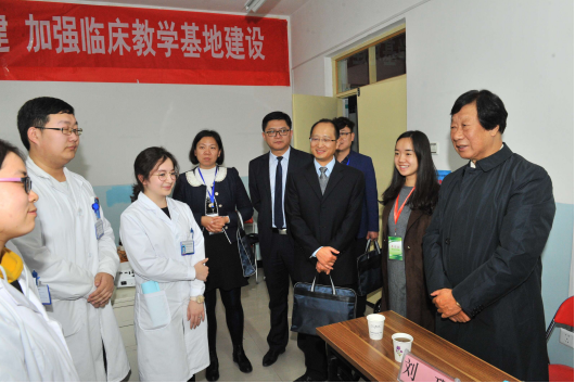 汇报会后,专家分两组分别走访了医院教学管理部门、内、外、妇、儿教研室;详细查看了教学相关的档案资料和记录,走进教室课堂听了部分理论课、临床技能课和PBL课程;走进临床科室观摩了实习生教学查房、形成性评价、小讲课、病例讨论等。下午4点和5点认证专家组分别与医院领导、教学管理人员、教师代表以及高年级学生代表召开了两场座谈会,专家们详细询问了医院教学管理、制度保障、教学资源、教学激励政策、教学改革与发展等各方面情况,并做了记录。座谈会后,专家组又走访了我院33社区卫生服务站,听取社区管理人员汇报,观摩了社区教学活动。史晨辉院长、吴向未副书记全程陪同检查。