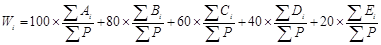 分别表示评审小组成员给予该班第i个指标评定非常好、好、较好、一般、差的个数,∑P表示评审小组成员总人数。
