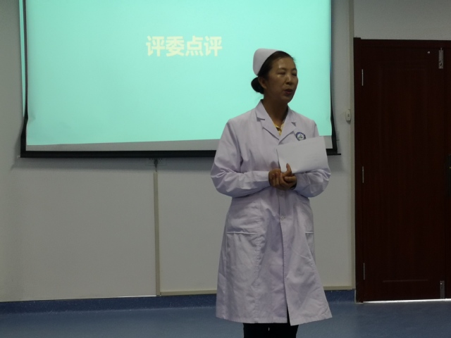 比赛现场,先由10名参赛选手集体进行理论答题,经过认真而有严谨的答题之后,进入操作比赛环节。参赛选手有条不紊的进行着护理操作,动作娴熟敏捷,操作标准、熟练,每位同学都以最佳的精神状态展现自己的风采。俗话说“台上一分钟,台下十年功”,选手们熟练操作的背后是日日夜夜勤学苦练的结果,是老师无私付出的结果。