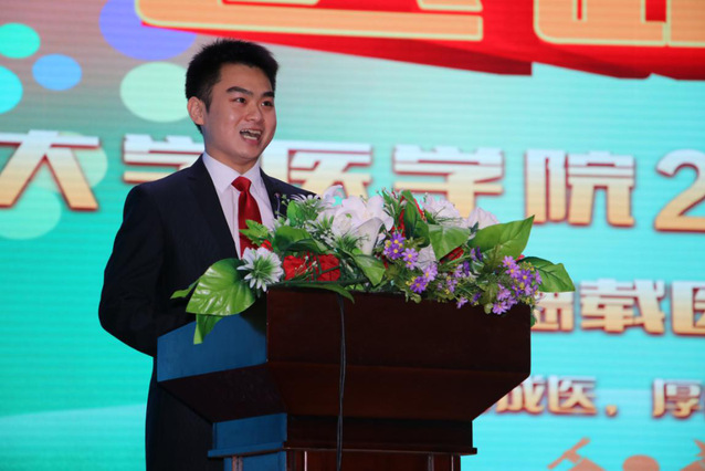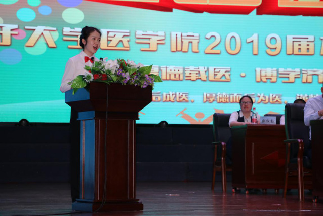 临床医学2014级吴倩同学作为毕业生代表进行发言,言语中表达了对大学五年生活的怀念,对老师、同学的不舍,同时也表达了同学们即将踏入新征程的坚定信心。