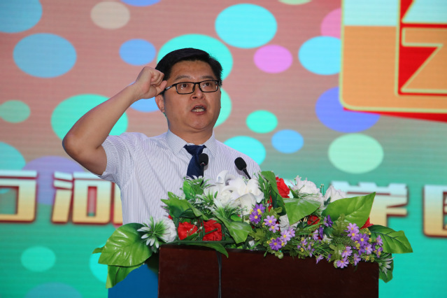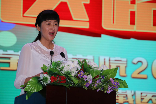 井明霞书记宣读《关于批准2019年普通本专科应届5338名学生和往届155名学生毕业的决定》的文件。