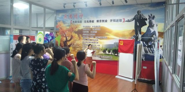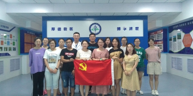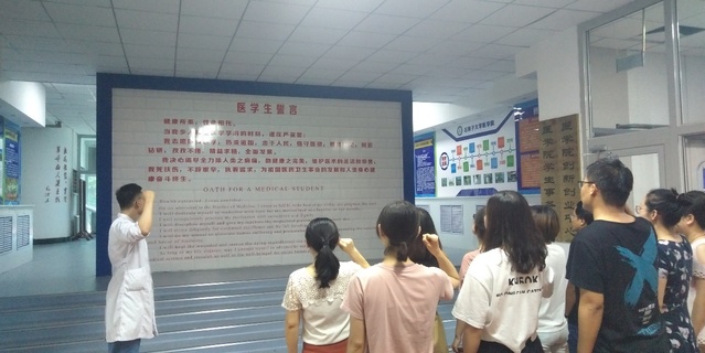 在杏五一楼大厅,这里汇聚了大学和学院70年来的办学历史,饱含着石医人践行“热爱祖国,无私奉献,艰苦创业,开拓进取”的兵团精神,展现了学校不畏艰难,砥砺前行,薪火相传,勇攀高峰的奋斗历程。在医学生誓言面前,支部党员不约而同的再次举起右拳,“健康所系,性命相托……”