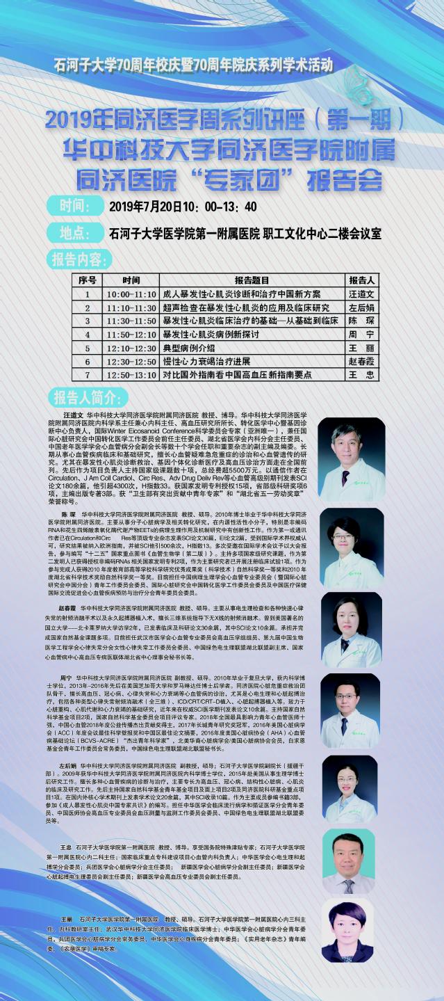 2019年同济医学周系列讲座(第一期)华中科技大学同济yl23455永利官网附属同济医院“专家团”报告会