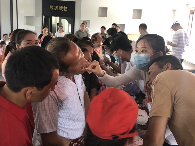 团队成员孜叶依尼·加尔恒、王文达从传染病的预防和如何做到口腔卫生保健两个方面为居民进行宣讲,互动演示、现场提问等方式明显调动了现场的氛围。接着,团队成员为居民检查口腔状况,免费发放牙具,并嘱咐居民养成良好的口腔卫生习惯,用心呵护口腔。