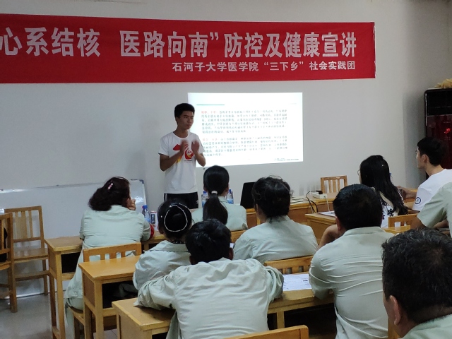 近日,yl23455永利官网“心系结核,医路向南”爱心医疗社会实践团队一行7人来到了和田市果之初食品有限公司,开展了结核病防控及健康宣讲并进行了结核病知晓率的问卷调查。