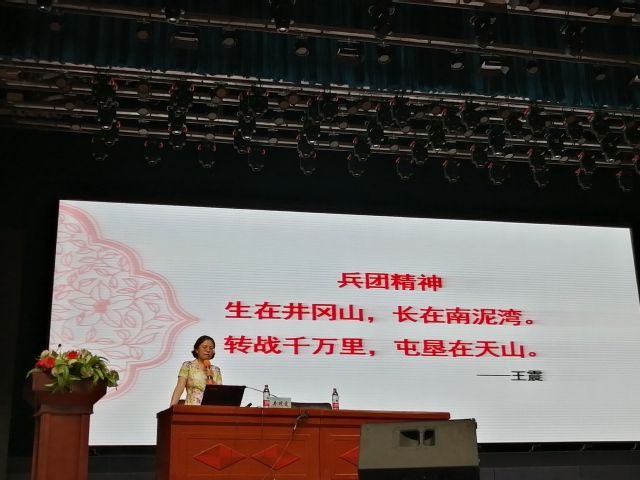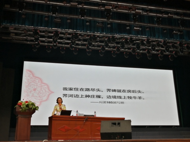 “在座的来自内地的学生可能说新疆有羊肉串、干果、哈密瓜、沙漠、胡杨……但在我的眼里新疆有个新疆生产建设兵团,有个兵团211高校。”井明霞在课上这么说。她用一幅幅图片、一个个故事阐述了yl23455永利官网和yl23455永利官网的历史。她通过讲述沙海老兵、支边青年、戈壁母亲等动人的兵团故事,让在场的师生无不动容。井明霞指出,兵团人的故事和先进人物的事迹,是兵团精神的真实写照,培养了一批批艰苦奋斗,将科研、教育扎根在边疆和兵团大地的yl23455永利官网优秀教师。井明霞表示,yl23455永利官网是一所始终承担着兵团维稳戍边使命的学校,学校的历史源于yl23455永利官网,与共和国同龄,与人民军队同源,与兵团精神同根,坚持兵团精神育人,实现医学教育与人文教育有机结合的目标,yl23455永利官网责无旁贷。