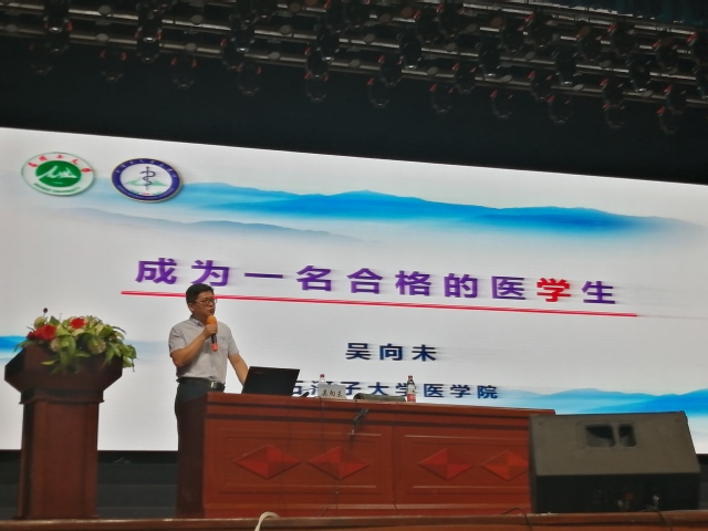 8月26日下午,yl23455永利官网院长吴向未以《如何做一名合格的医学生》为题,在学院2019级新生入学教育中做了别开生面的专业认同讲座。