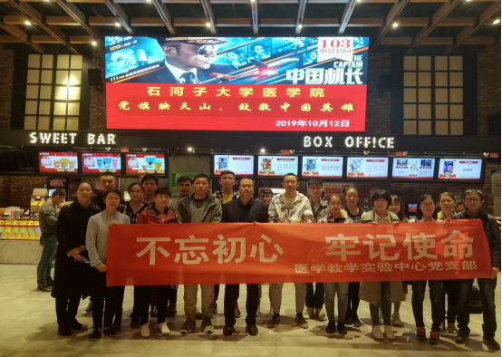 随着“不忘初心 牢记使命”主题教育系列活动开展以来,各项活动如火如荼的进行中,10月12日,医学教学实验中心党支部组织师生开展了“党旗映天山,致敬中国英雄”的主题党日活动暨民族团结一家亲活动,中心教师与结亲学生共同观看了电影《中国机长》。