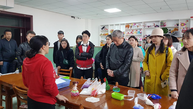 在参观福利院的过程中,我们都有一些感触良多,首先感觉到福利院非常的干净整洁,而且过道和走廊里都有一些精美的装饰,很漂亮。其次是我们在参观手工室的过程中看到了孩子们的手工作品,非常的感动。他们通过自己不断的学习,手是那么的巧,编织出了这么多精美的手工艺品,每一个作品都标注了制作者和价格,还有制作该作品所花的时间。福利院里的老师告诉我们,不需给孩子们捐钱,这里的孩子们希望通过自己的劳动去挣钱,去实现自己的价值。我们几乎所有的老师们都购买了这里的手工艺品,物美价廉,孩子们也高兴,何乐而不为呢!最后是他们的宿舍给我们一种家的感觉,宿舍里有沙发、电视、洗衣机、独立卫生间,房间干净整洁,这么好的条件超出了我们的预期。