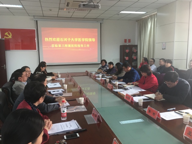 12月4日,学院党委书记井明霞、院长吴向未、副院长马克涛及机关各职能部门办公室主任一行赴第三附属医院石河子市人民医院调研教学基本建设、临床师资培养、教学实习管理、科学研究等工作。