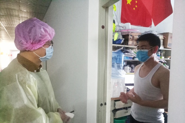 他,今年55岁,工作32年,副教授,医学微生物学和免疫学教师,是此次参与迎接第一批返校生工作队伍和主动参与宿舍学习生活的志愿者队伍中,年龄最大的教师——吴万贵。