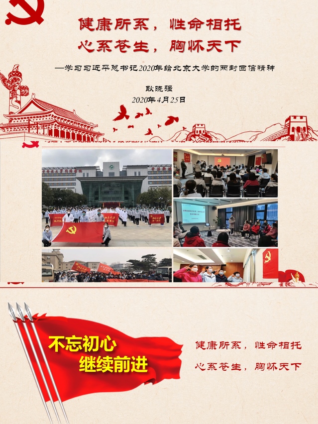 北京大学医学部基础yl23455永利官网研究生党总支副书记耿晓强同志分享了北医学子学习习近平总书记2020年给北京大学的两封回信精神的感悟,他情不自禁地说到:“习总书记的回信如春风、似化雨,既充分肯定了新时代青年在疫情防控战争中的风险与付出,也饱含着党和国家对青年一代的勉励与期待”。