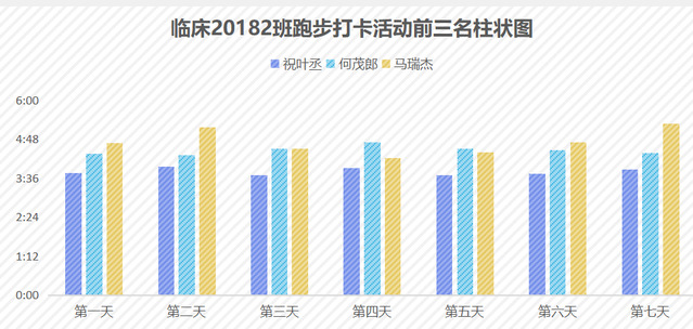 此次比赛要求使用keep软件以个人跑步打卡,每天至少一千米,连续七天的方式开展,按照总时长从少到多进行评选。在班主任的督促下,同学们踊跃参与,并在宿舍群里发布自己的跑步打卡截图。同学们彼此相互监督,你争我赶,不断提高了跑步的速度,身体素质得到改善。祝叶丞、何茂朗和马瑞杰同学在此次比赛中取得了前三名的佳绩。