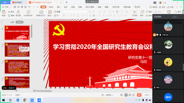 为深入学习贯彻研究生教育会议精神,研办以年级、党支部为单位,通过多种方式组织线上、线下学习研讨,研办全体教师深入各党支部进行学习指导,同学们围绕全国研究生教育会议内容展开热议。