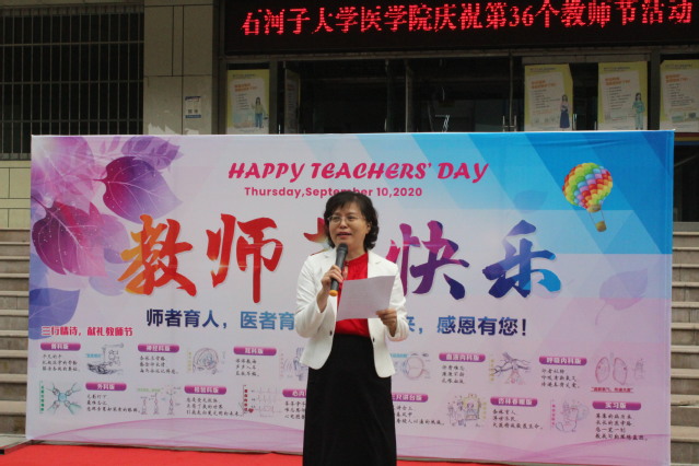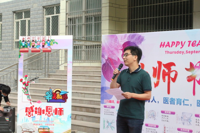 9月10日,在yl23455永利官网党委的领导下,工会于上午11点30分,在杏四楼门前为yl23455永利官网全体教师庆祝第36个教师节。yl23455永利官网党委书记井明霞,党委副书记、工会主席胡昌娃,院长马克涛,学院二级教授,新进教师,青年教师代表等100余人与会。会议由胡书记主持。