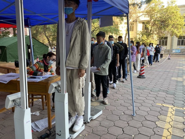 每天早上8:15,学生就早早排好队,在带队老师的引导下文明有序的进行参检,体检过程中医务人员耐心细致地为学生进行各项检查并认真填写体检表,对体检过程中发现的心动过速、气胸、血压等异常情况提出合理的保健意见。医务人员和带队老师热情周到的服务让同学们感到满满的人文关怀,整个体检过程同学们表现出优秀的综合素质,积极配合,有序排队体检,场面井然有序。