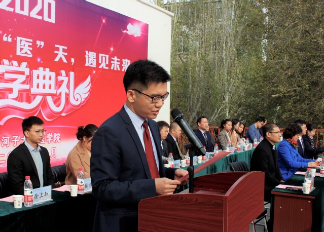 口腔医学系2020级新生李塍意作为2020级新生代表,在发言中表示面对突如其来的“疫情”,白衣天使们逆行的背影让参加高考的2020级新生,深深感动和崇敬,也更加坚定了学医的信心。并对学院的细致入微的关怀表达了感谢。
