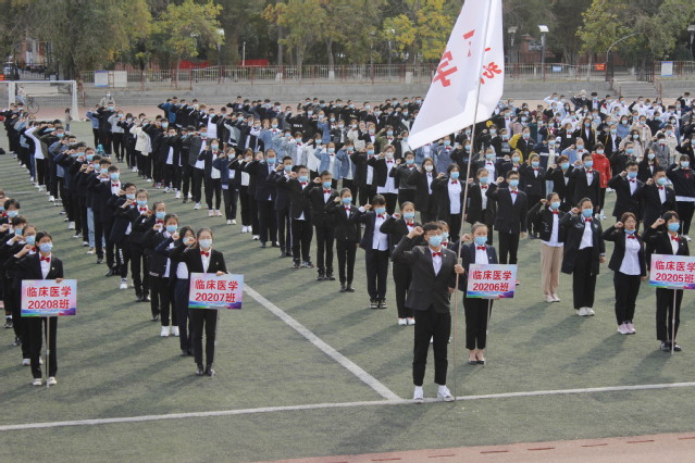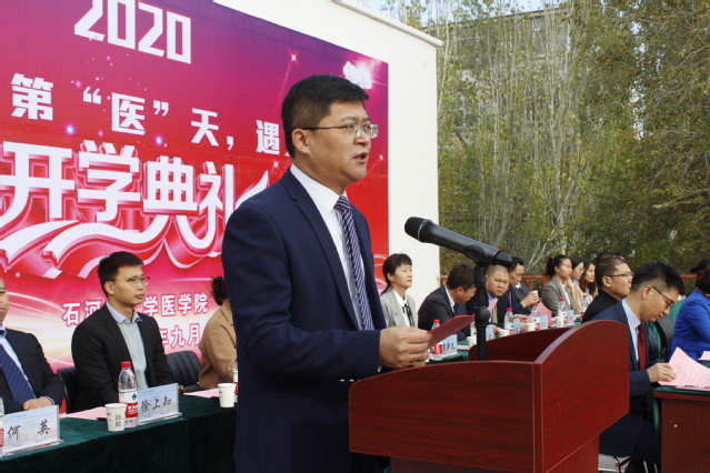 金秋九月,石大的校园里处处焕发着勃勃生机。9月26日,南区操场院旗、系旗迎风飘扬,操场上整齐划一的排列着775名2020级yl23455永利官网全体新生。上午10时30分,伴随着庄严的《义勇军进行曲》,yl23455永利官网“逐梦石医,第‘医’天,遇见未来”2020级新生开学典礼隆重举行。院领导井明霞、吴向未、胡昌娃、马克涛、陈香梅与各系办主任、新生班主任代表、全体辅导员老师共同参加了开学典礼。典礼由yl23455永利官网党委副书记胡昌娃主持。