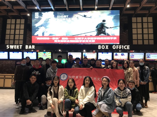 为弘扬爱国主义精神,激发爱党、爱国热情,进一步加强基层党支部的沟通与联系,2020年10月8日,预防医学系党总支联合病理医学系党支部开展“民族团结一家亲”活动,组织教工党员及学生们一同观看了爱国主义电影《八佰》。