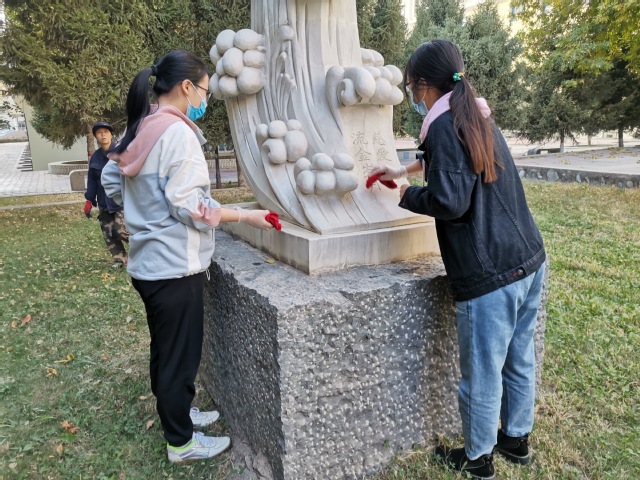 在劳动过程中,每一位同学都卯足了劲儿,不怕脏、不怕累,不放过每一个角落,充分体现了党员不怕吃苦、爱校如家的主人翁精神。经过一个小时的集中清扫,南区的街道焕然一新,雕像重新焕发光彩。