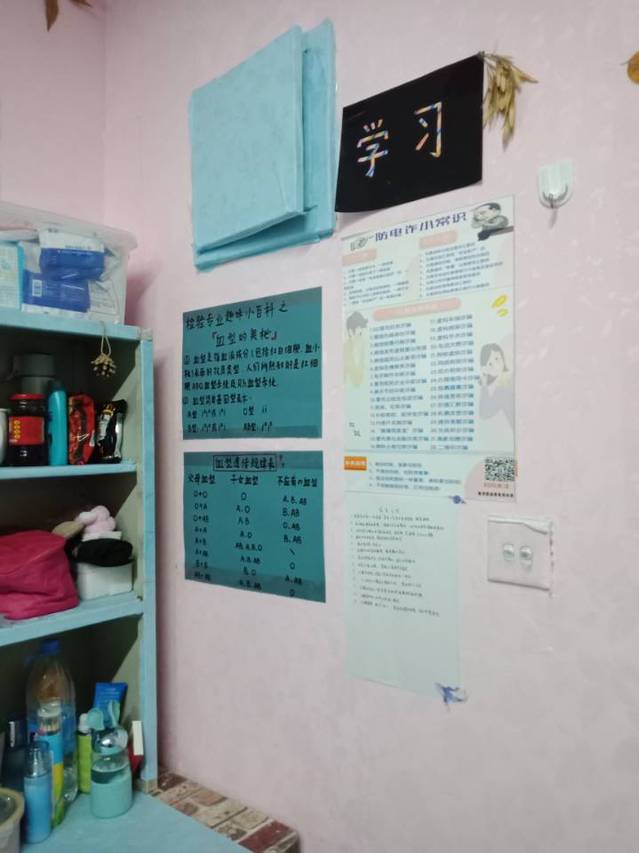 在宿舍设计中大家都置办了属于自己宿舍的学习角。学习角不仅富于专业特色,而且包含DIY画作或名人名言。在浓厚的医学氛围中又增添了文学气息。学习角的设立,体现了小萌新们对医学学习的重视,展现了新一代医学生的风采。