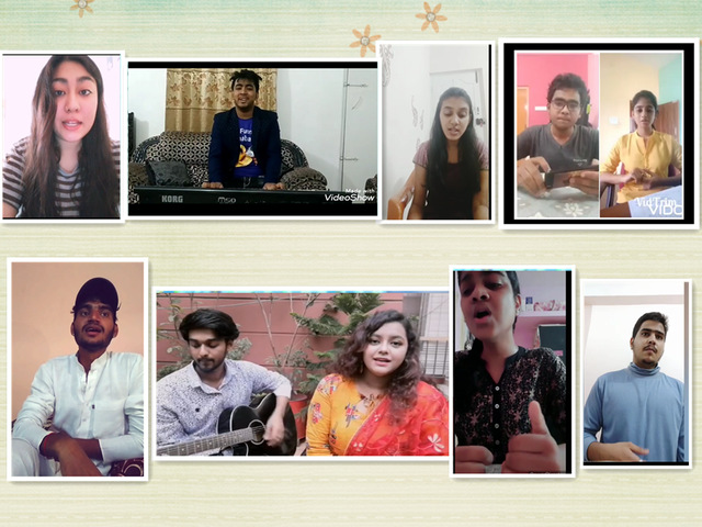此次比赛共有13名同学参加,同学们在家中用各种各样的方式完成比赛,有的同学与班里其他同学线上视频自创歌曲,有的同学找了亲戚帮忙弹吉他伴奏,也有的同学自弹自唱。