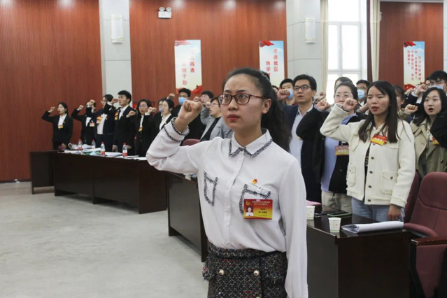 滕老师的发言赢得了现场阵阵掌声。紧接着,由滕老师领誓,带领大家重温入团誓词。会场内全体人员高举右拳,饱含深情地重温曾经的誓言。相信大家定会不忘初心,牢记使命,以誓言中的一字一句作为团员日常行为规范的准绳,勇挑石医担当,勇担时代重任。大会听取并审议通过了yl23455永利官网第十五届团委工作报告,选举产生了15名共青团yl23455永利官网第十六届委员会委员。选举环节在雷骥良老师的主持下有序进行,各代表团代表按照流程和要求严肃认真地投下了庄严神圣的一票。