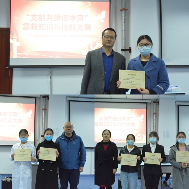 为了让同学们了解更多的急救知识,在意外事故发生时可以将知识用到实处,同时也为提高急救技能水平和救人及自救技能,加强医学生自身综合素质和专业使命认同。口腔医学系学生党支部联合医学教学实验中心党支部于10月31日在杏三A224临床技能实验中心实验室举办“‘支部共建促学风’急救知识&技能”大赛。