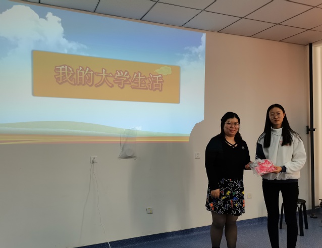 每位新结亲学生向大家介绍自己理想的大学生活:他们有的想在大学期间让自己变得能歌善舞,有的想做一手好菜,有的想让自己变得更有才情,也有的认为大学学业更为繁重,想更加努力的学习。在听的每位师生都对新来的同学充满了关心、关爱:有的仔细倾听,有的时不时显露出会心的微笑,也有的鼓励他们,也有原本不相识通过介绍发现竟然是高中同校的校友。高年级的学生和老师也分别谈了他们的大学生活,共同分享了“我的大学”。