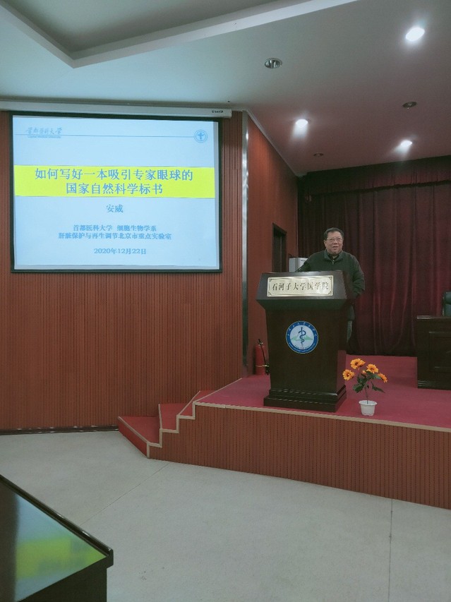 12月22日,首都医科大学安威教授受邀为我院教师进行国自然基金标书撰写培训,讲座题为《如何写好一本吸引专家眼球的国家自然科学标书》。