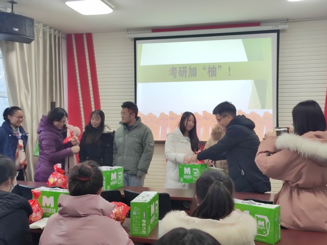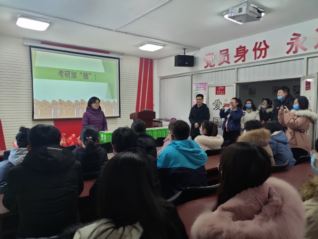 为缓解考研学子备考压力,给考研学子加油助威,12月25日下午18时,yl23455永利官网党委书记井明霞,党委副书记胡昌娃,以及团委书记滕婉蓉和学生工作办公室全体辅导员慰问2021届考研学生。