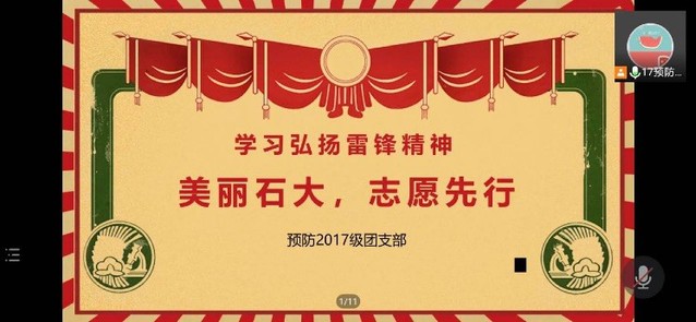 “毫不利己,专门利人”凝炼的八个字,是对雷锋一生精神的最佳写照。2019级的团日活动以专题学习会等形式,扎实广泛开展雷锋精神的学习教育活动,鼓励团员青年分享自己的学习感悟,并将所学所悟落实到日常学习生活中。会议结束前,同学们齐唱《学习雷锋好榜样》并宣誓:“学习雷锋好榜样,忠于革命忠于党。爱憎分明不忘本,立场坚定斗志强”!这四句誓词也是歌词的前四句,也体现了社会主义核心价值观的具体含义。在新征程中,预防医学系2019级团支部团员必将牢记总书记嘱托,用雷锋精神的坐标校准心灵的方位,初心不改,矢志不渝,在yl23455永利官网美丽校园的建设中砥砺前行、建功立业。