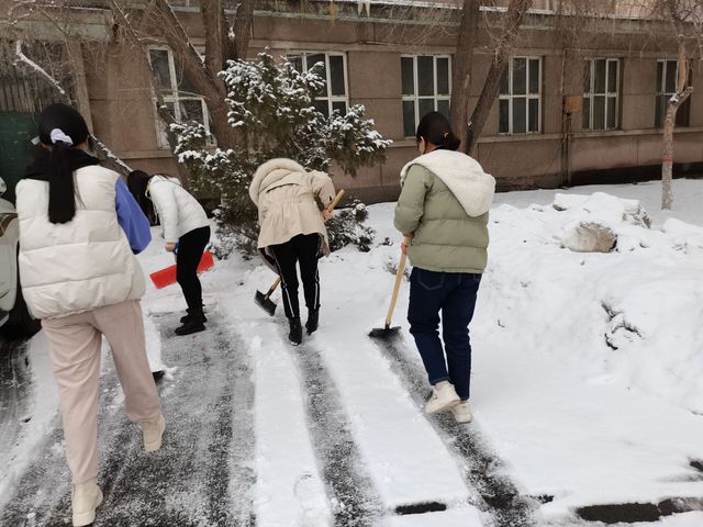 而上课之需遇到这初春之雪,便有了预防学子的志愿扫雪活动。
