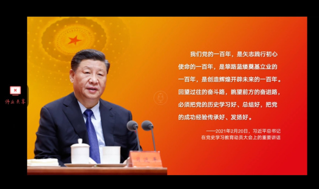 全体成员共唱团歌后,预防医学系2017级由团支部书记带领大家学习了中国共产党史。从1921年-2021年,我们党已经走过了一百年的历史,从筚路蓝缕到创造辉煌,从风雨历程到伟大成就,我们党的发展越来越好。