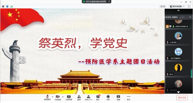 清明这天,按照传统习俗,便是要扫墓祭祖、踏青郊游。在祭祖中慎终追远,在踏青中追寻春光。在党的百年奋斗路上,清明节也被赋予了别样内涵。会议伊始,预防医学系全体团员共同观看了党史视频,视频中习总书记指出:“走得再远、走到再光辉的未来,也不能忘记走过的过去,不能忘记为什么出发。”百年来,中国共产党同人民风雨同舟、生死与共,从胜利走向胜利,取得了百年辉煌成就、积累了百年宝贵经验;如今,我们正满怀信心迈进全面建设社会主义现代化国家新征程,大家在观看完视频后不禁感叹中国发展之快和中国共产党的蓬勃力量之大,纷纷许诺要永葆初心,牢记使命,乘风破浪,扬帆远航,为迎接建党百年营造浓烈、红火、生动、活泼的舆论氛围,实现中华民族的伟大复兴!