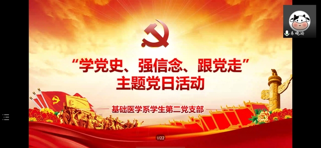 4月16日,基础医学系学生第二党支部通过腾讯会议线上举行了党史学习教育新民主主义革命专题学习会议。本次会议,全体人员学习了新民主主义革命的理论知识,观看了“《党史故事一百讲》”关于五四运动的党史教育视频,重新回顾那段波澜壮阔的历史画卷。最后,支部各小组代表针对本次专题学习内容进行心得分享。