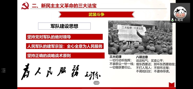 随后,活动组代表李思琪同志向与会同志分享了本次专题学习的心得体会:“没有新民主主义革命,就没有社会主义革命和新中国的建立。新民主主义革命的胜利,使人民解放,有了当家作主的机会。我们要时时提醒自己,保持清醒的头脑,实事求是,才能在学习生活中少走弯路,才能取得更大的成功。”