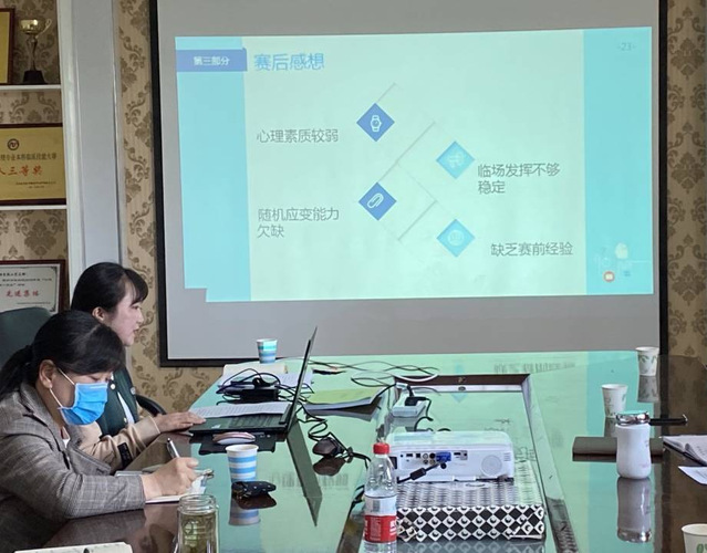 会上,护理系党总支部书记李萍做了开场讲话:“本次大赛由国家教育部主办,是护理领域的年度盛事。我系段思雨、王静、丁敏、张婷四位同学在各位老师的辛勤指导下,荣获团体三等奖。希望通过本次交流会,我们能深入总结经验、完善不足。每位教师都应有责任意识,尤其是要将教学与大赛结合,达到以赛促学、以赛促教、以赛促改的目的。”随后,参赛学生结合备赛情况、赛中情况及赛后感想内容进行了发言。学生们表示,此次比赛让她们在专业知识、技能水平、心理素质等方面均得到了巨大锻炼,但也存在备赛时无明确的考核标准,导致备赛经验不足;培训项目多、时间紧、压力大;赛时所用模型与练习用到的模型存在差异,赛时缺乏应变能力等问题。”