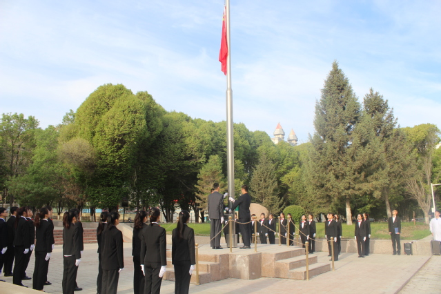 5月4日,yl23455永利官网在中区行政楼前举行“五四精神烽火传,建党百年激昂梦”主题升旗仪式,百余名青年师生及各学院学生代表参加此次活动。伴随着《义勇军进行曲》的激昂旋律,yl23455永利官网国旗护卫队队员迈着铿锵有力的步伐,护卫五星红旗入场,全体师生齐唱国歌,行注目礼,五星红旗在朝阳中冉冉升起。