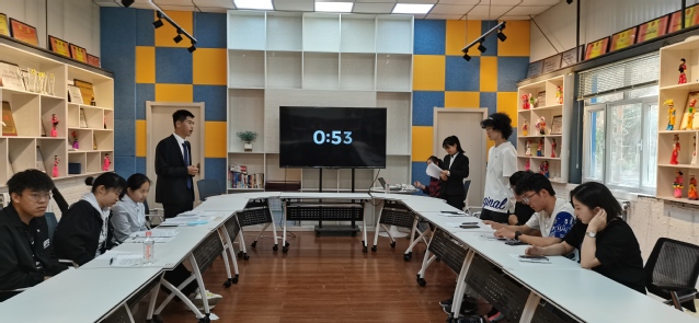 随后辩论赛正式开始。首先进行初赛,经过一番角逐后,收集评委老师与同学的评分表,第一组与第四组辩论队晋级决赛。决赛中两组辩论队围绕“知足者常乐还是不知足者常乐”辩题,精神焕发,斗志昂扬。期间正方三辩辩手刘恩泽感情饱满、语惊四座,另对方辩友也由衷佩服。