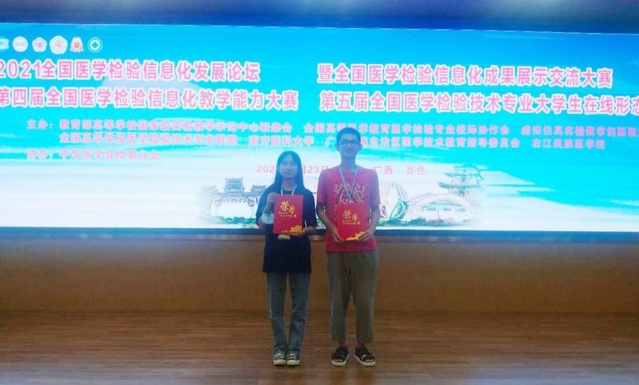 本次大赛医学检验系选派2名学生参加,由医学检验系副主任马雅静老师带队。赛前多名老师为参赛选手进行了两个月精心的专业指导培训。比赛中医学检验技术专业18级学生王嘉宇、盛淑洋全神贯注、有条不紊地完成了临床检验形态涂片在线考核和数字切片血细胞分类两项操作,展现了扎实的检验技术操作水平,在众多选手中脱颖而出,经过层层筛选,最终王嘉宇、盛淑洋同学分别荣获大赛二、三等奖。