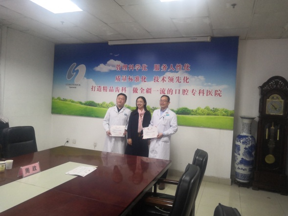 在校领导及院领导的关心下2019年4月9日上午,在yl23455永利官网左后娟副院长、yl23455永利官网第一附属医院徐江副院长带领下一行5人来到乌鲁木齐市口腔医院,口腔医院院长聂冰、副院长汪振华、教学科主任杨立群带领口院部分教学骨干热烈迎接,双方围绕口腔医学专业认证、教育教学改革、教学实习基地建设等事宜开展交流座谈。聂冰院长详细介绍了教学团队,提出各行政职能部门以教学为中心,分工明确,团结协作,保证认证各项工作的顺利进行。左后娟副院长提出了口腔医学本科认证的意义和重要性,提出“以评促学,以查促改”,教学原始资料准备、存留及完善,为认证工作做好准备。徐江副院长提出以教学促进实习基地发展,取长补短,教学、科研、基础可进行多方面交叉学习。
