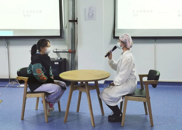 专业组决赛的现场则是另一番景象。“口若悬河”的口腔关键词解读,围绕常见的口腔名词,选手们展开了细致紧凑的讲解。其中,刘诗雨同学的出色表现更是将比赛推向了高潮。选手和模拟患者在“医问三知”则联袂复现了问诊现场,透过问诊,仿佛能够看到未来的一个个专业的口腔医生。我们于每一句问候当中见悲悯,也于每一次解释当中见真知。