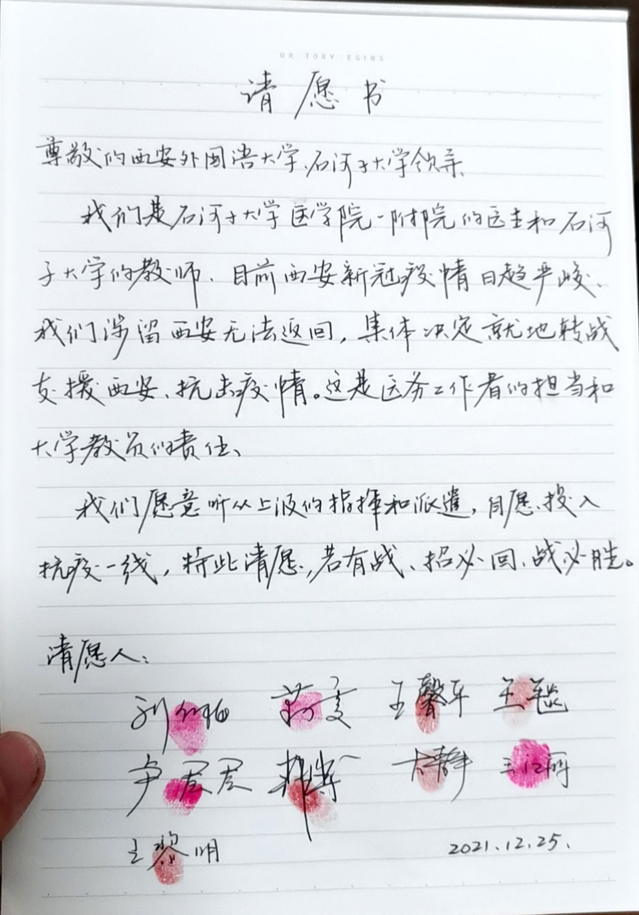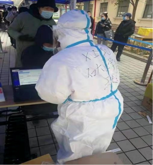 2021年8月底,yl23455永利官网王毯、王馨平教师经大学选派至西安外国语大学参加英语培训,在培训即将结束时,西安市连日出现新增本土确诊病例。12月22日,西安疫情防控再次升级,一轮又一轮的核酸检测正在进行,面对疫情防控的严峻形势,我院王毯、王馨平教师在结束紧张的培训和考核后,不顾身心疲惫,主动请战,立即投入到当地的疫情防控工作队伍。