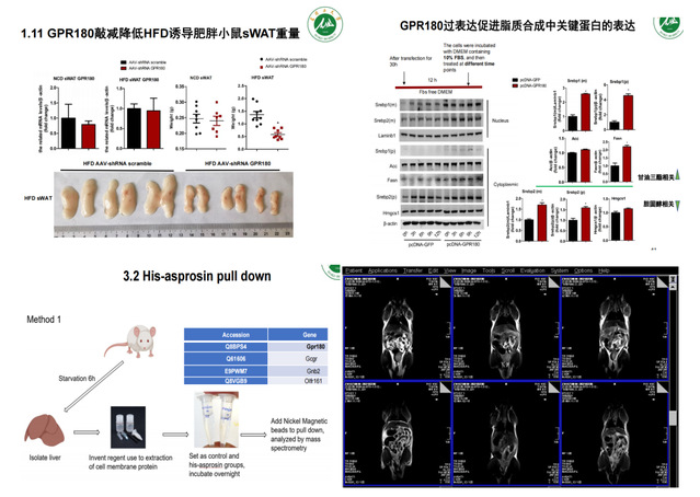 张博士先给大家介绍了项目研究背景:非酒精性脂肪肝病(NAFLD)具有患病率高、危害性大、药物费用负担重、现有药物鲜有显著疗效、需要开发更多的药物靶点等特点,接着提出科学问题:GPR180是否在脂质代谢中发挥作用及其可能的作用机制以及潜在内源性配体、并研究GPR180是否为治疗NAFLD潜在靶点。最后着重介绍了博士期间的三个研究内容1、GPR180敲减改善小鼠NAFLD代谢表型;2、GPR180敲减改善NAFLD的分子机制;3、GPR180潜在配体的研究,并总结了研究成果。