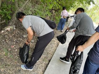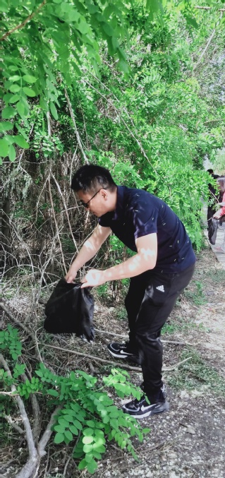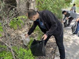 上午11:30大家准时在145团垂钓园集合。活动中,在清捡垃圾时,大家认真对待,俯下身、弯下腰、认真捡、彻底清,对垂钓园周边人行道、公园内部道路上、休息区域边边角角的烟头、树枝、零食包装袋等垃圾进行了集中清理。