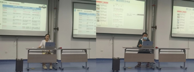 本次活动共邀请到四位考研取得优异成绩的师哥师姐进行分享。田秋伟师哥为大家介绍了考研的基本流程,提醒同学们要及时关注院校发布的招生指南,并以思维导图的形式为大家理清了重要时间节点;瞿柏康师哥则从自己的心路历程出发向大家阐述了学习效率的重要性,跟着自己的节奏走,不要一味埋头苦读书。张凯歌师哥推荐了实用的备考方法与学习资源;马瑞师姐则回忆了她备考英语的经验做法,每天坚持背单词、做阅读的习惯就是她成功的秘诀。