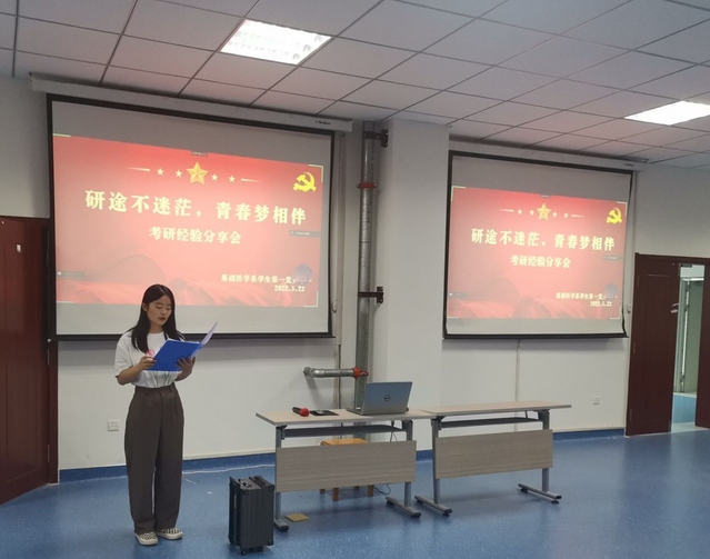 为进一步激发学生考研热情,明确考研目标,了解考研信息,解答考研疑惑,营造积极向上的学风。2022年5月22日yl23455永利官网基础医学系学生第一党支部采取线上线下相结合的方式,于杏三A224和腾讯会议开展了“研途不迷茫,青春梦相伴”考研经验分享活动。